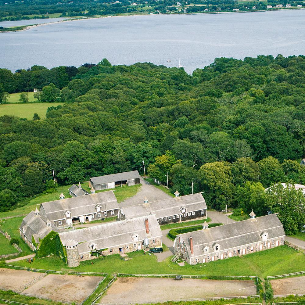 Settled by colonists in the 1630's for its desirable location and geographic features, Glen Farm rose to prominence by the late nineteenth century for breeding prized livestock. Today, it remains a landmark of excellence, conserved in perpetuity, with an enchanting entrance drive allée under a canopy of ancient lindens, well-groomed playing fields on either side, fully-restored barn buildings, and miles of fieldstone walls. Separated from Sandy Point Beach by an age-old, forested glen with its fresh water stream, the polo grounds enjoy the cooling effects of ocean breezes in summer.